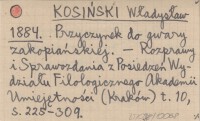 KOSIŃSKI Władysław 1884 Przyczynek do gwary zakopiańskiej.