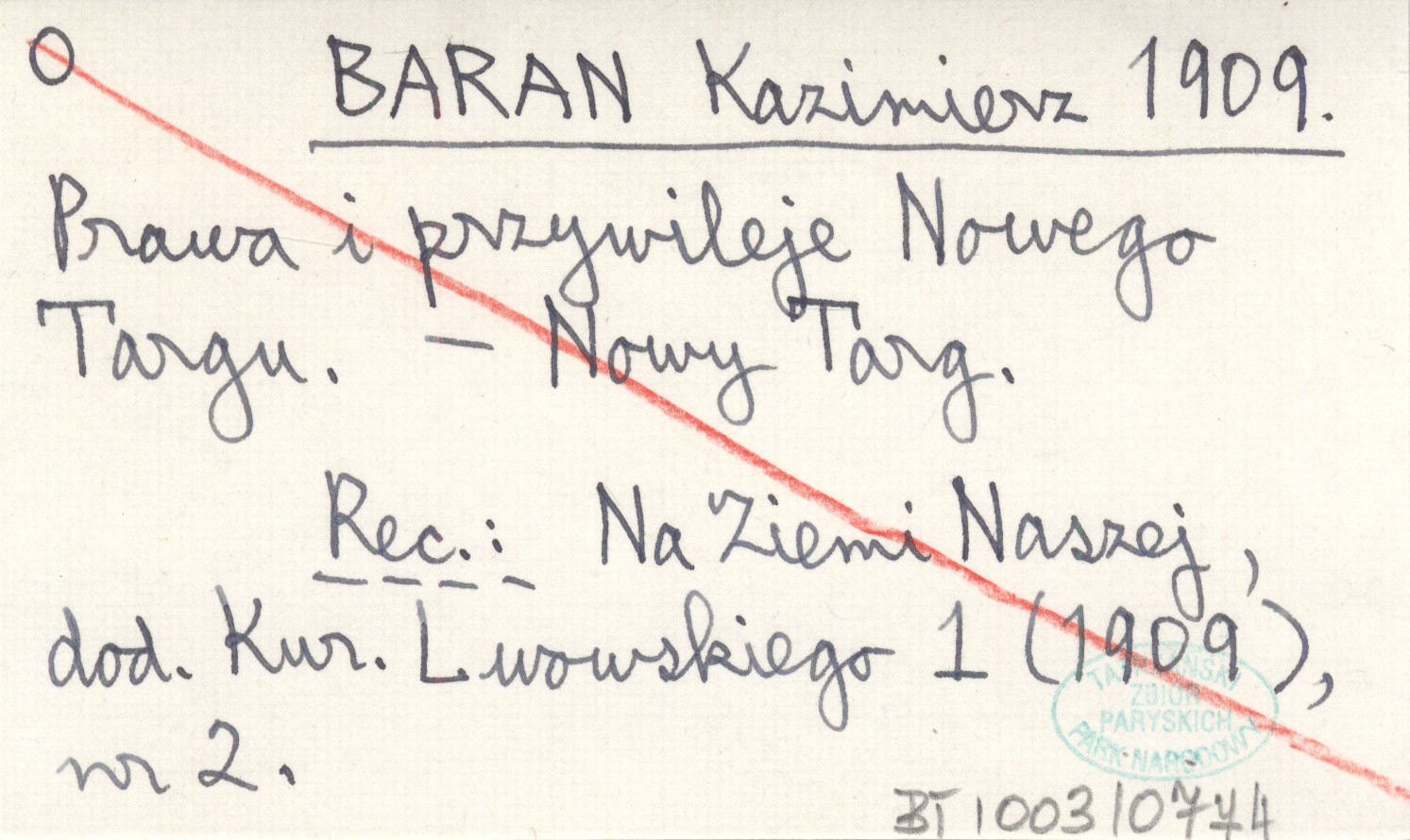BARAN Kazimierz 1909 Prawa i przywileje Nowego Targu.