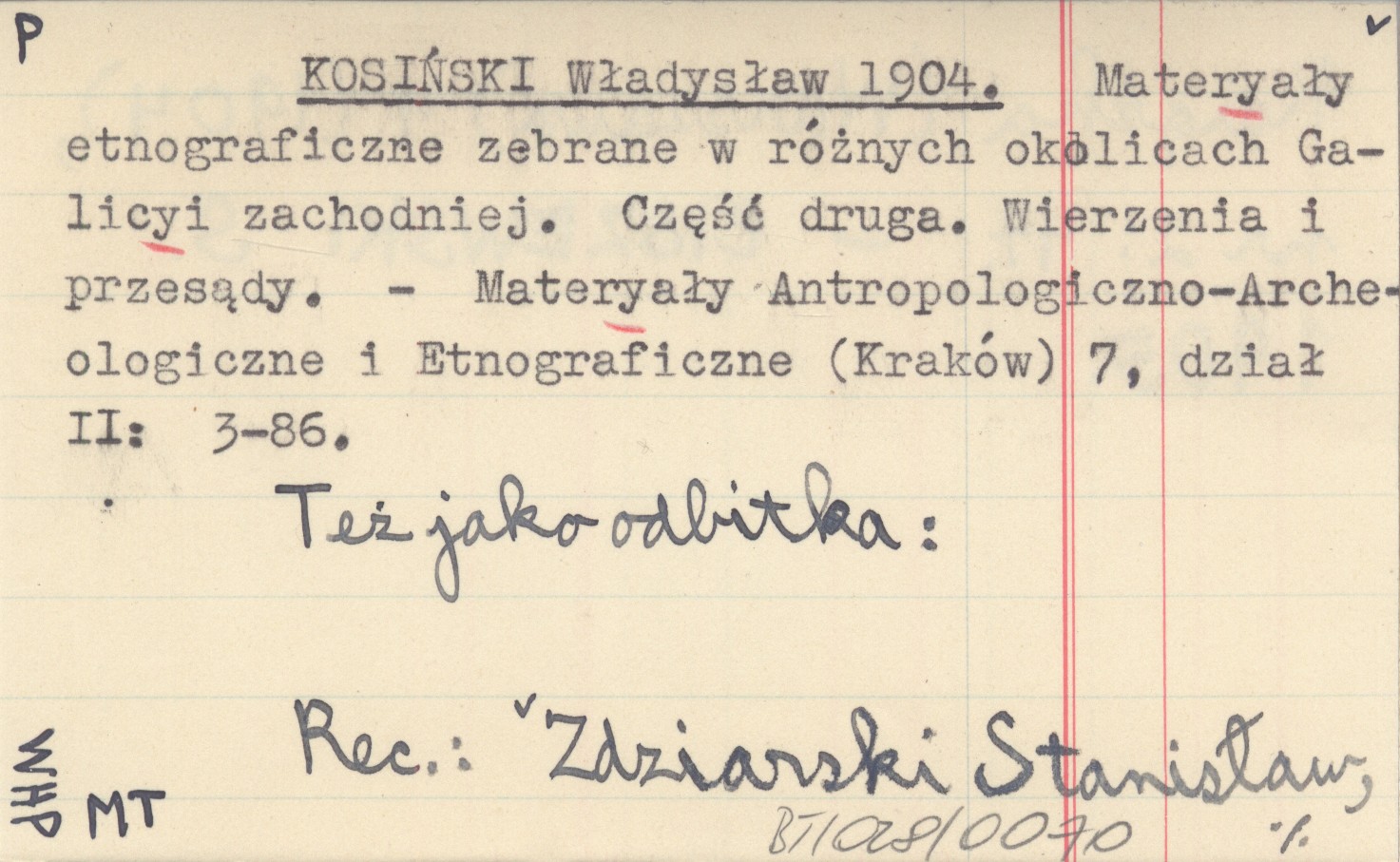 KOSIŃSKI Władysław 1904 Materyały etnograficzne zebrane w różnych okolicach Galicyi zachodniej. Część druga. Wierzenia i przesądy.