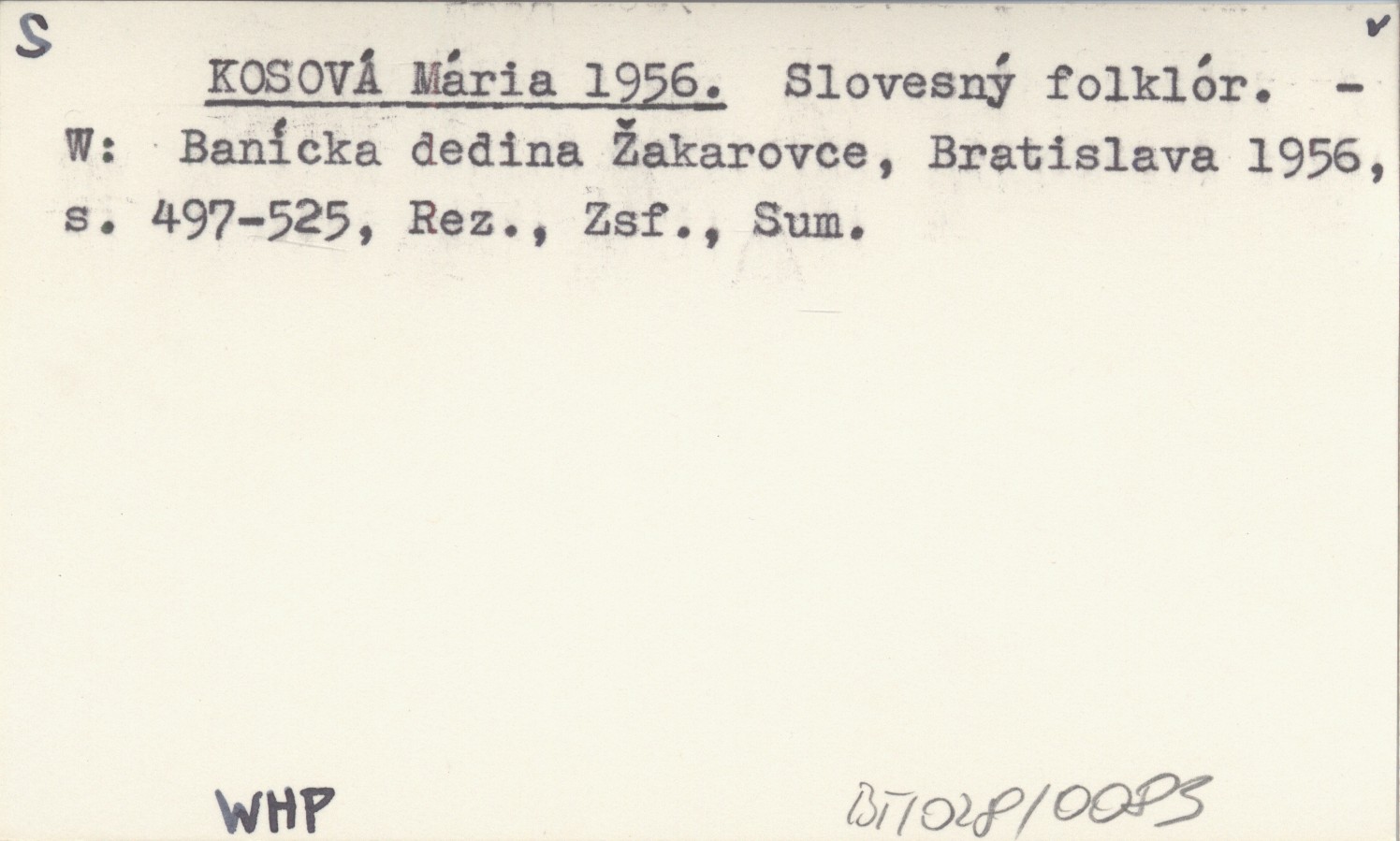 Banícka dedina Žakarovce, Bratislava 1956. , S. 497-525, Rez., Zsf., Sum.