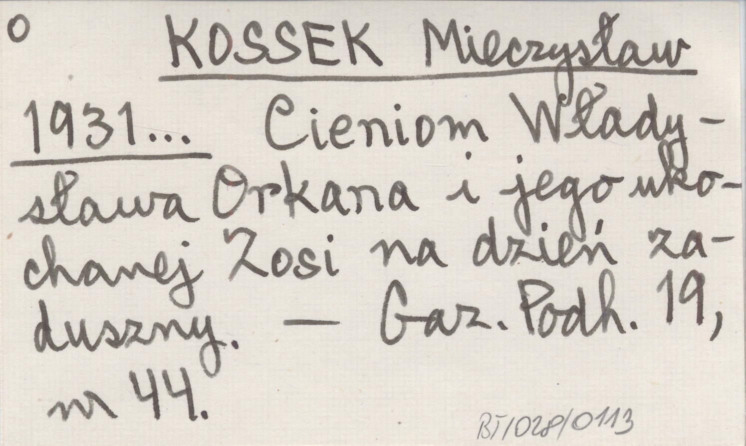 KOSSEK Mieczysław 1931... Cieniom Władysława Orkana i jego ukochanej Zosi na dzień zaduszny.