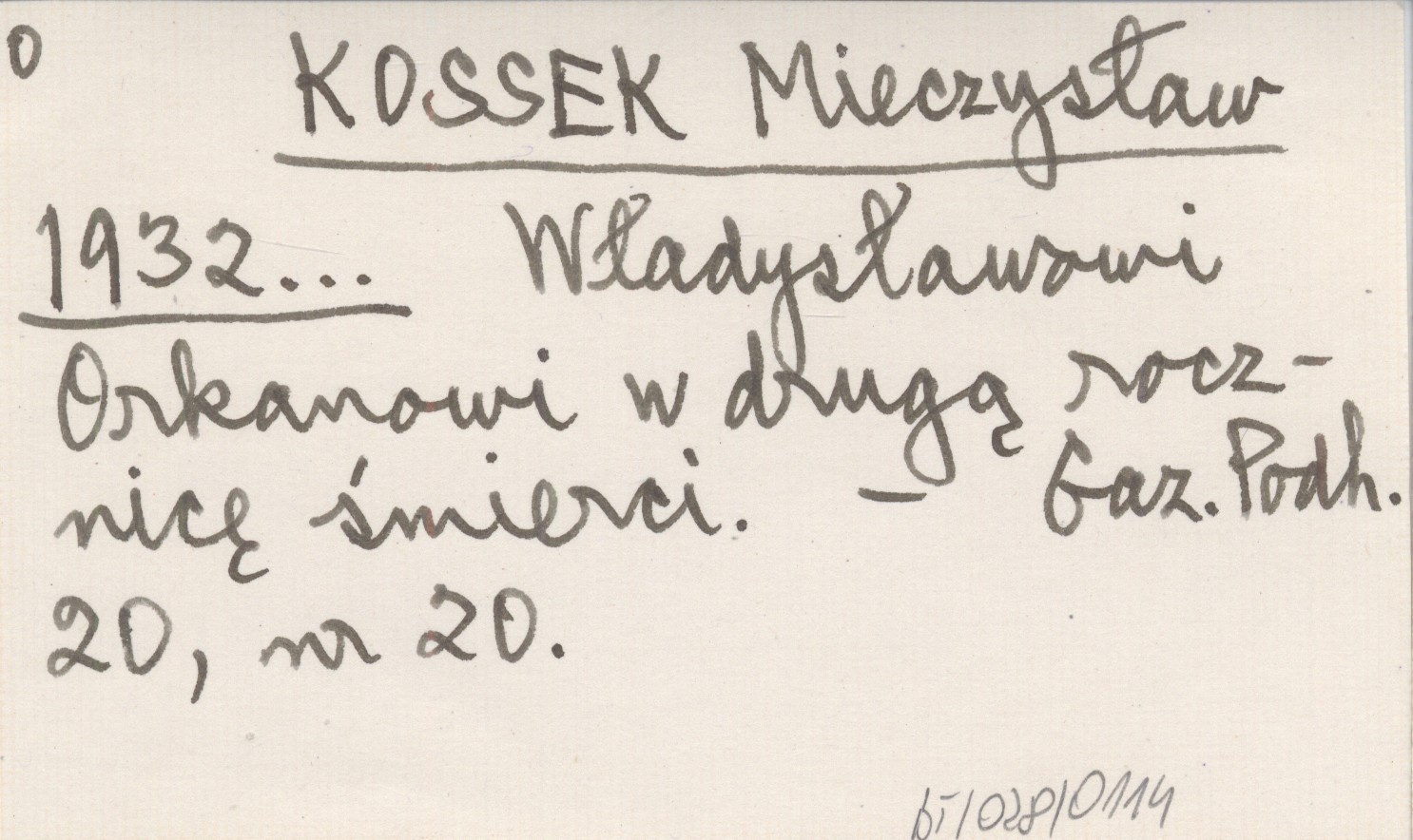 KOSSEK Mieczysław 1932... Władysławowi Orkanowi w drugą rocznicę śmierci.