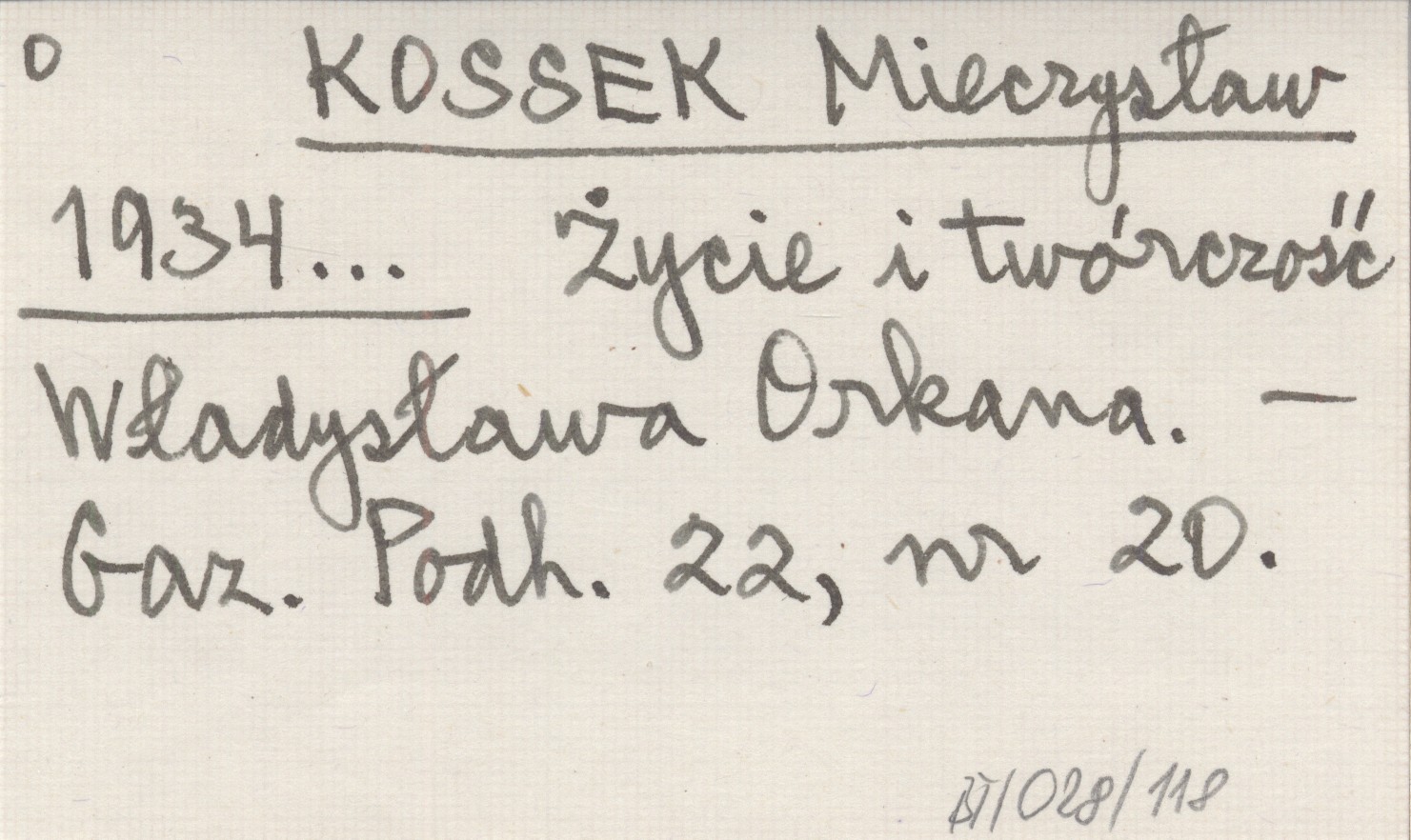 KOSSEK Mieczysław 1934... Życie i twórczość Władysława Orkana.