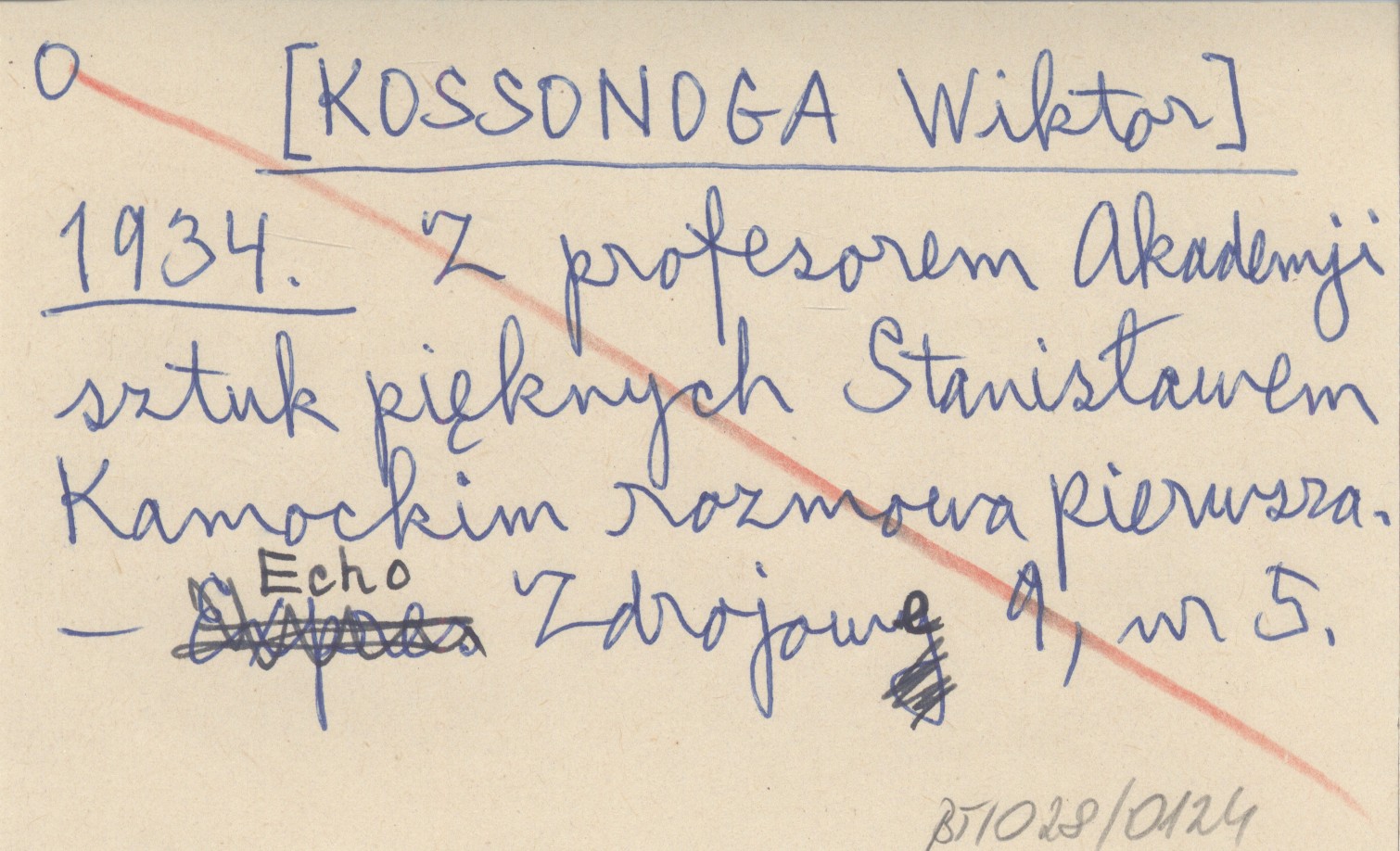 [KOSSONOGA Wiktor] 1934 Z profesorem Akademji sztuk pięknych Stanisławem Kamockim rozmowa pierwsza.