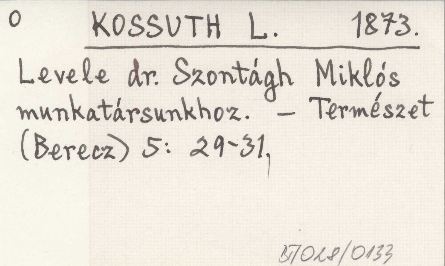 KOSSUTH L. 1873 Levele dr. Szontágh Miklós munkatársunkhoz.