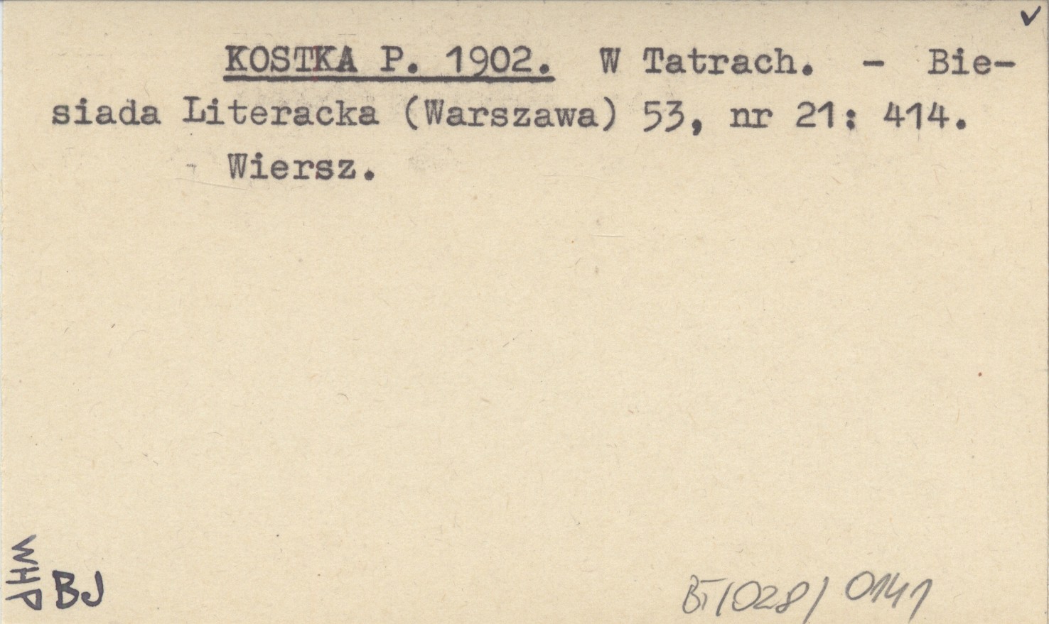 Biesiada Literacka (Warszawa) , 53, nr 21: 414. Wiersz.