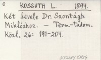 KOSSUTH L. 1894 Két levele Dr. Szontágh Miklóshoz.