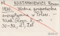 KOSTANKIEWICZ Roman 1930 Wodna gospodarka energetyczna w Polsce.