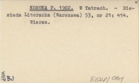 KOSTIUKOW J. 1963 Zdjęcia geologiczne Wielkiej Świstówki oraz Kotła Mułowego i Litworowego.