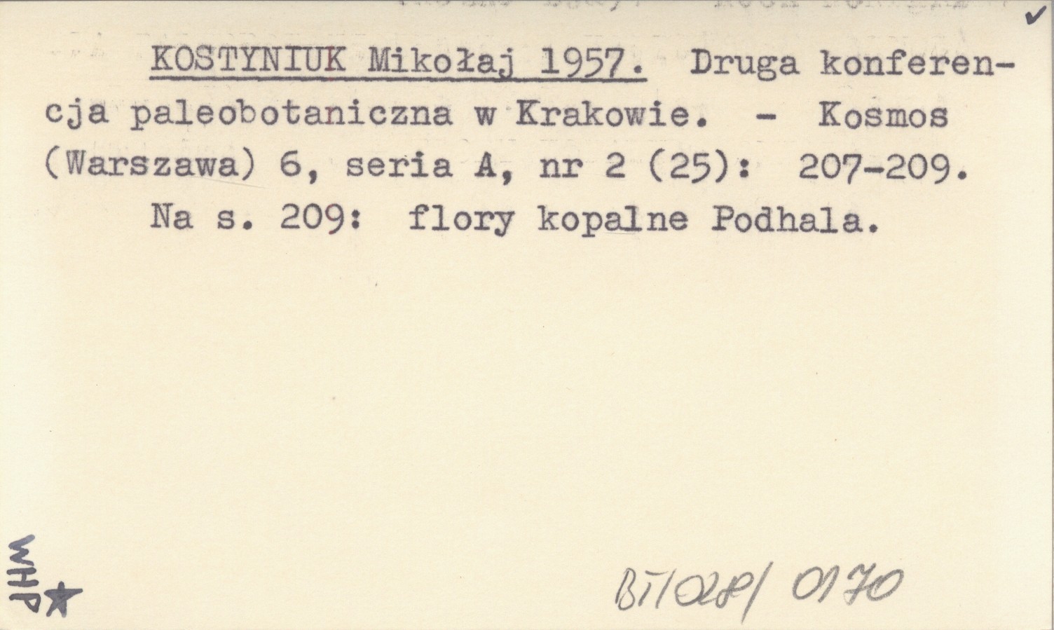 KOSTYNIUK Mikołaj 1957 Druga konferencja paleobotaniczna w Krakowie.