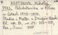KOSTYNIUK Mikołaj 1973 Paleobotanika w Polsce w latach 1945-1970.