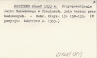 KOSTYRKO Józef 1933 a Przysposobienie Parku Narodowego w Pieninach, jako terenu prac badawczych.