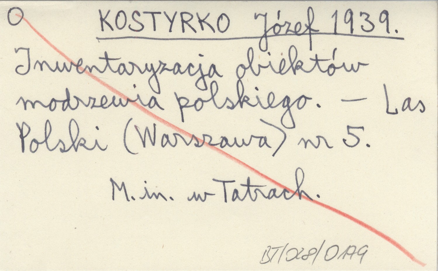 KOSTYRKO Józef 1939 Inwentaryzacja obiektów modrzewia polskiego.