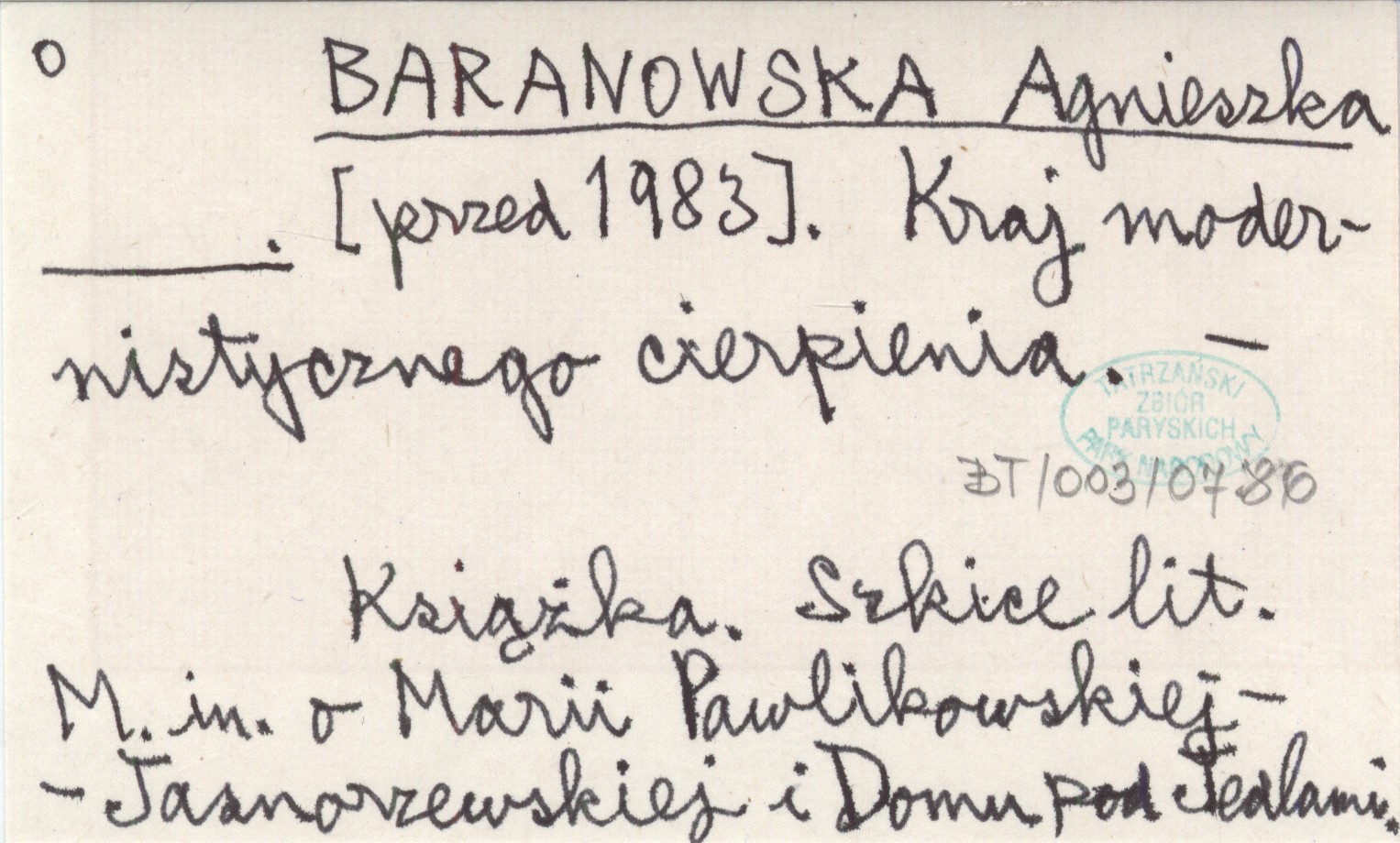 BARANOWSKA Agnieszka przed 1983 Kraj modernistycznego cierpienia.