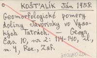 KOŠŤALÍK Ján 1958 Geomorfologické pomery doliny Javorinky vo Vysokých Tatrách.