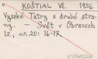 KOŠTIAL Vl. 1956 Vysoké Tatry s druhé strany.