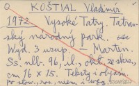 KOŠTIAL Vladimír 1972 Vysoké Tatry. Tatranský národný park.