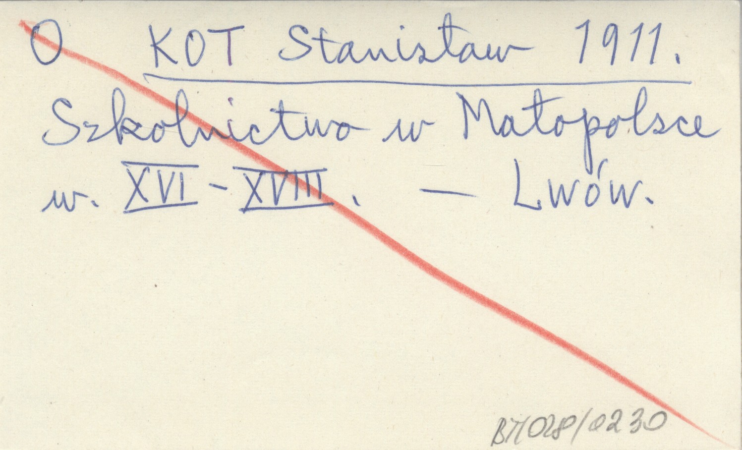 KOT Stanisław 1911 Szkolnictwo w Małopolsce w. XVI-XVIII.