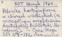 KOT Henryk 1964... Polonika kartograficzne w zbiorach wiedeńskich (ze szczególnym uwzględnieniem Austriackiej Biblioteki Narodowej).
