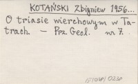 KOTAŃSKI Zbigniew 1956... O triasie wierchowym w Tatrach.