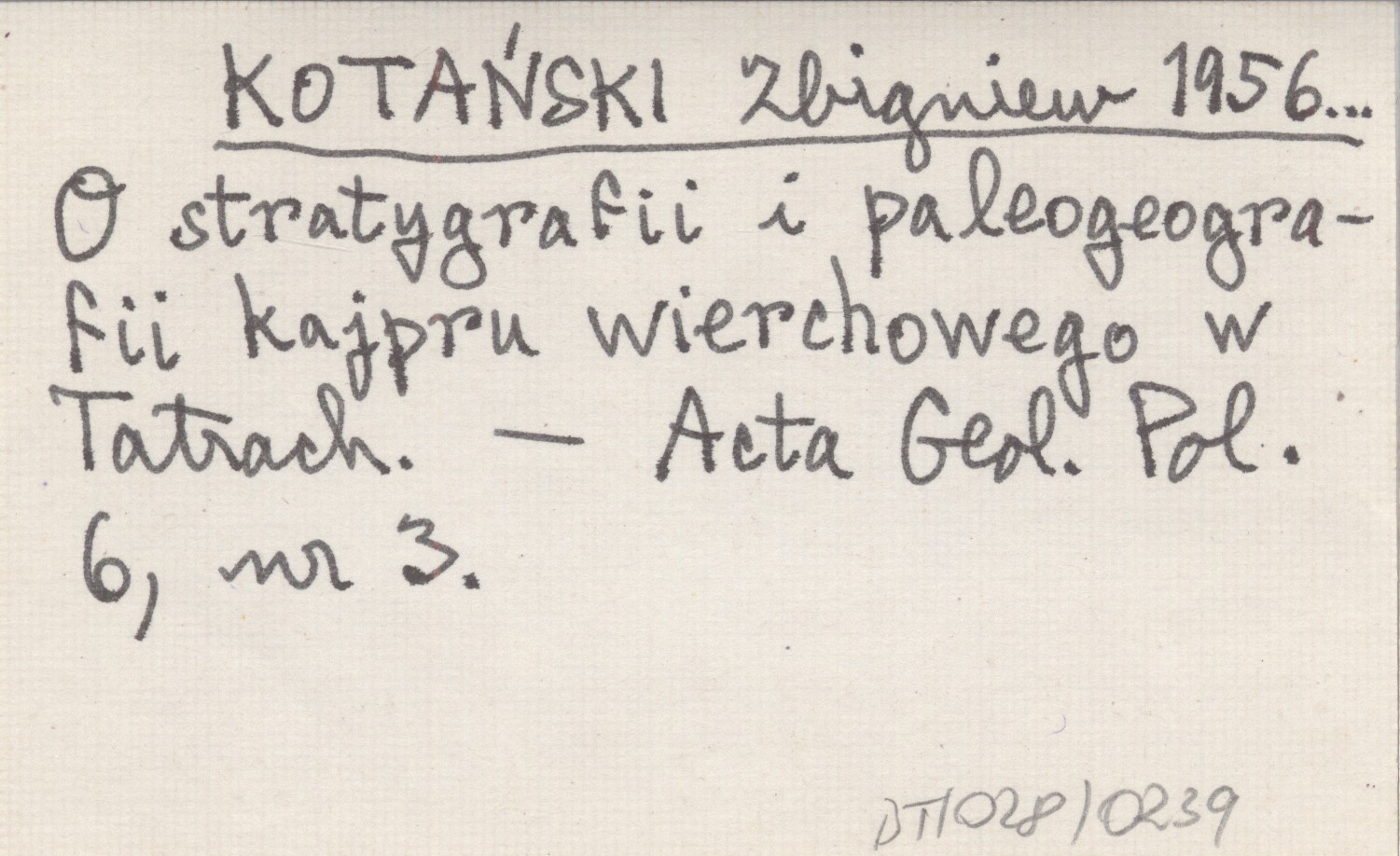 KOTAŃSKI Zbigniew 1956... O stratygrafii i paleogeografii kajpru wierchowego w Tatrach.