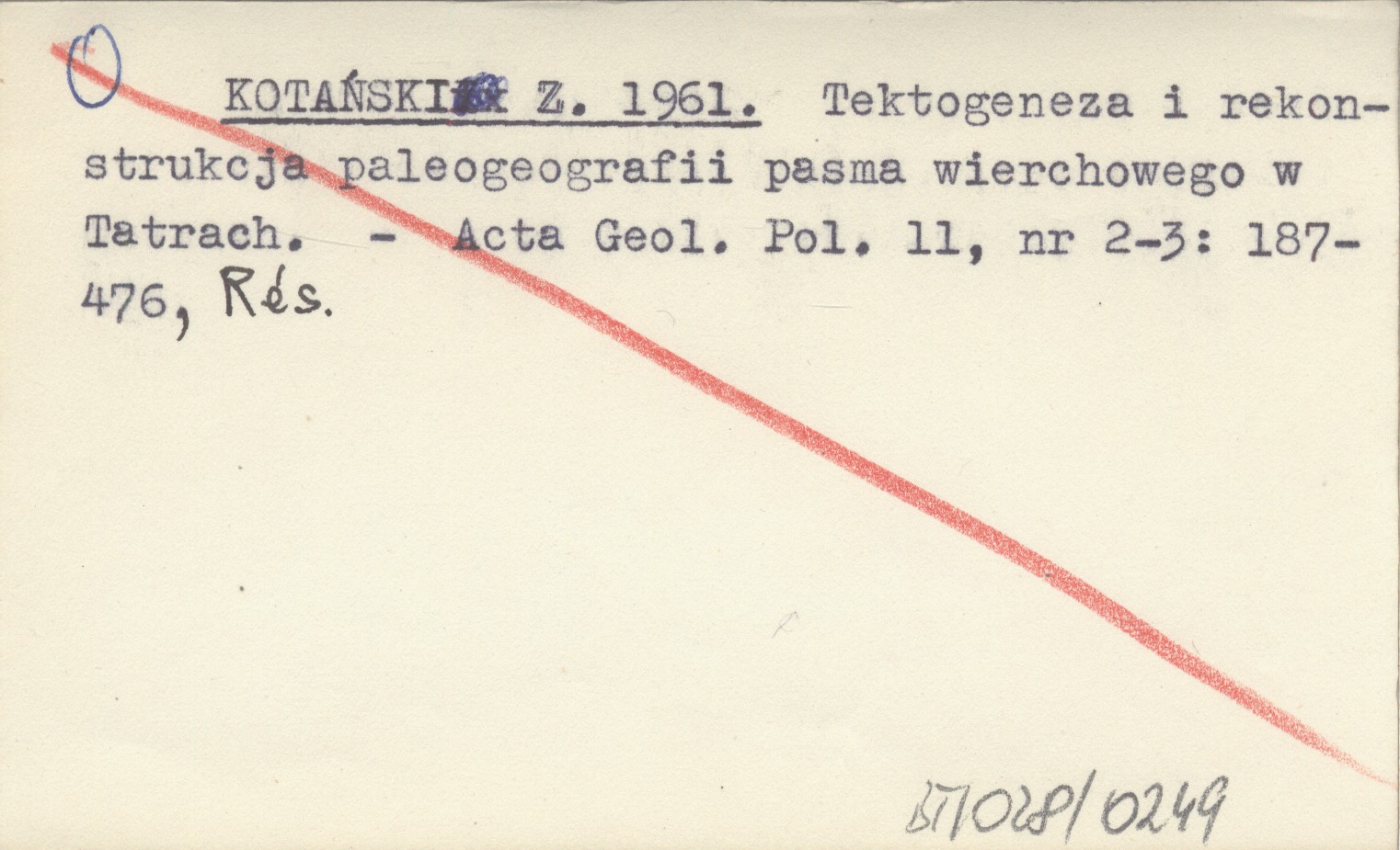 KOTAŃSKI Z. 1961 Tektogeneza i rekonstrukcja paleogeografii pasma wierchowego w Tatrach.
