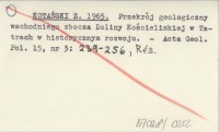 KOTAŃSKI Z. 1965 Przekrój geologiczny wschodniego zbocza Doliny Kościeliskiej w Tatrach w historycznym rozwoju.