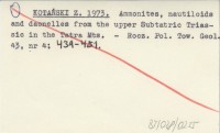 KOTAŃSKI Z. 1973 Ammonites, nautiloids and daonelles from the upper Subtatric Triassic in the Tatra Mts.