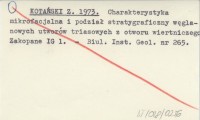 KOTAŃSKI Z. 1973 Charakterystyka mikrofacjalna i podział stratygraficzny węglanowych utworów triasowych z otworu wiertniczego Zakopane IG 1.