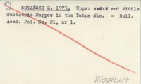 KOTAŃSKI Z. 1973 Upper and Middle Subtatric Nappes in the Tatra Mts.