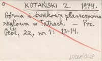 KOTAŃSKI Z. 1974 Górna i środkowa płaszczowina reglowa w Tatrach.