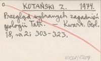 KOTAŃSKI Z. 1974 Przegląd wybranych zagadnień geologii Tatr.