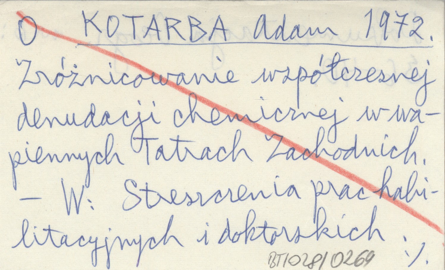 KOTARBA Adam 1972 Zróżnicowanie współczesnej denudacji chemicznej w wapiennych Tatrach Zachodnich.