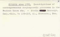 KOTARBA Adam 1970 Investigations of contemporaneous morphogenetic processes in the Western Tatra Mts.