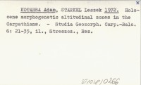 KOTARBA Adam STARKEL, Leszek. ; 1972 Holocene morphogenetic altitudinal zones in the Carpathians.