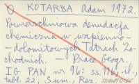 KOTARBA Adam 1972 Zróżnicowanie współczesnej denudacji chemicznej w wapiennych Tatrach Zachodnich.