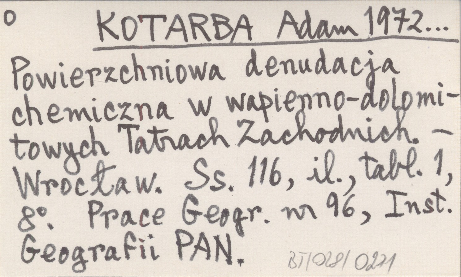 KOTARBA Adam 1972... Powierzchniowa denudacja chemiczna w wapienno-dolomitowych Tatrach Zachodnich.