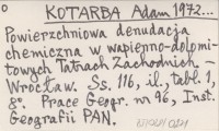 KOTARBA Adam 1972... Powierzchniowa denudacja chemiczna w wapienno-dolomitowych Tatrach Zachodnich.