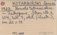 KOTARBIŃSKI Janusz 1923 Nowele tatrzańskie.