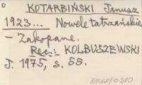 KOTARBIŃSKI Janusz 1923... Nowele tatrzańskie.