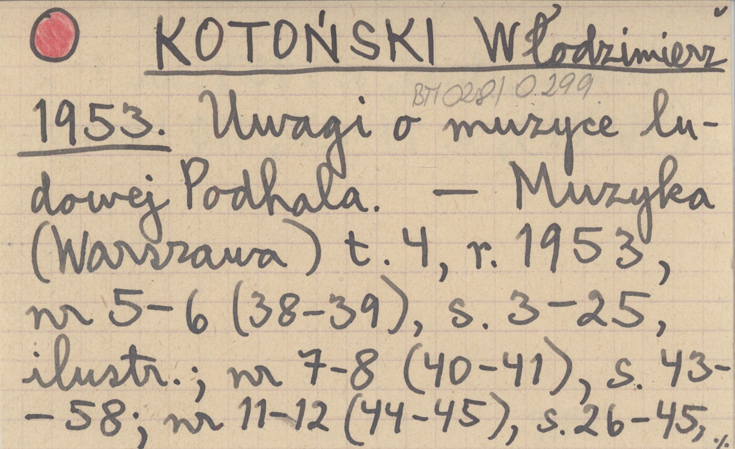 KOTOŃSKI Włodzimierz 1953 Uwagi o muzyce ludowej Podhala.