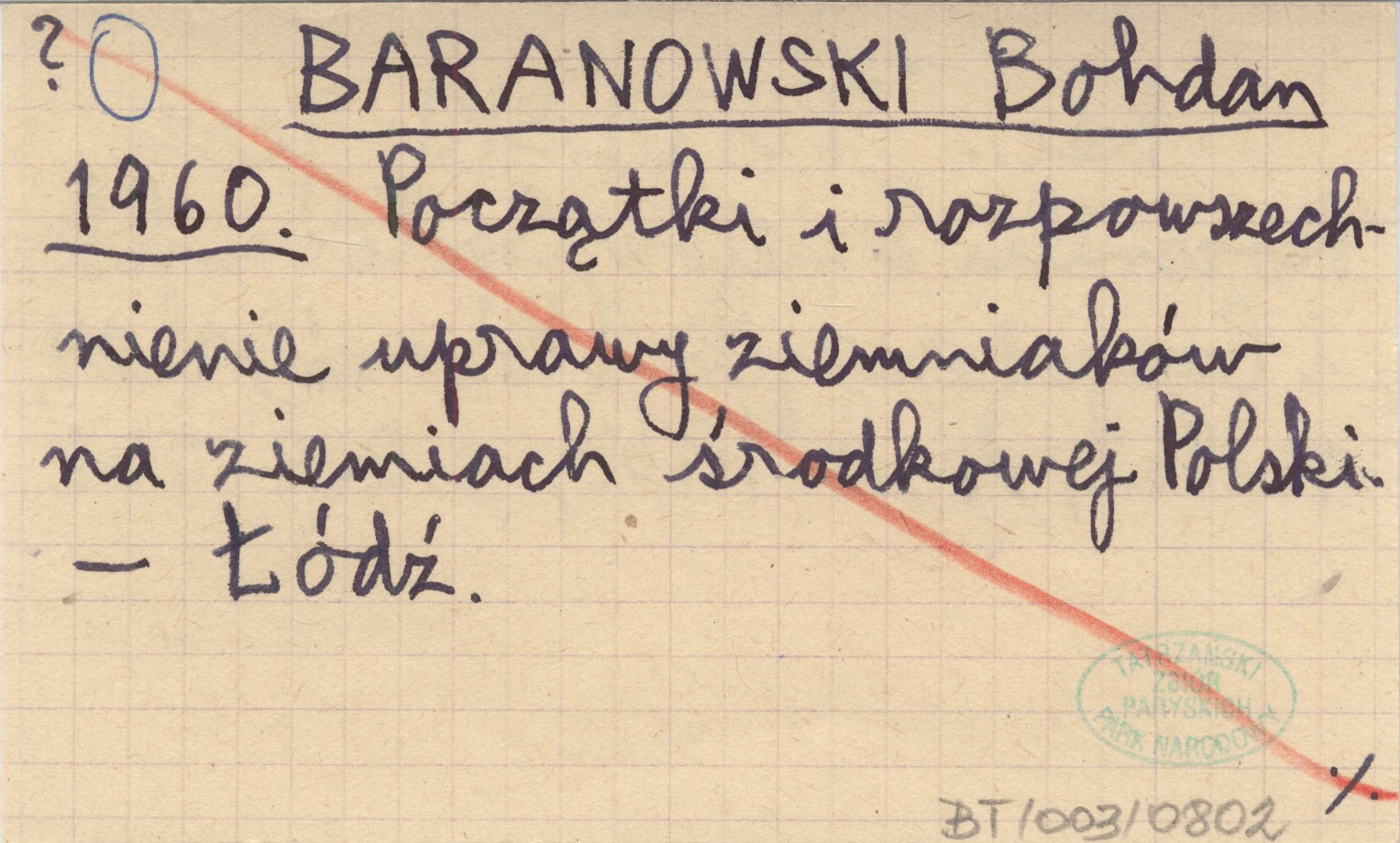 BARANOWSKI Bohdan 1960 Początki i rozpowszechnienie uprawy ziemniaków na ziemiach środkowej Polski.