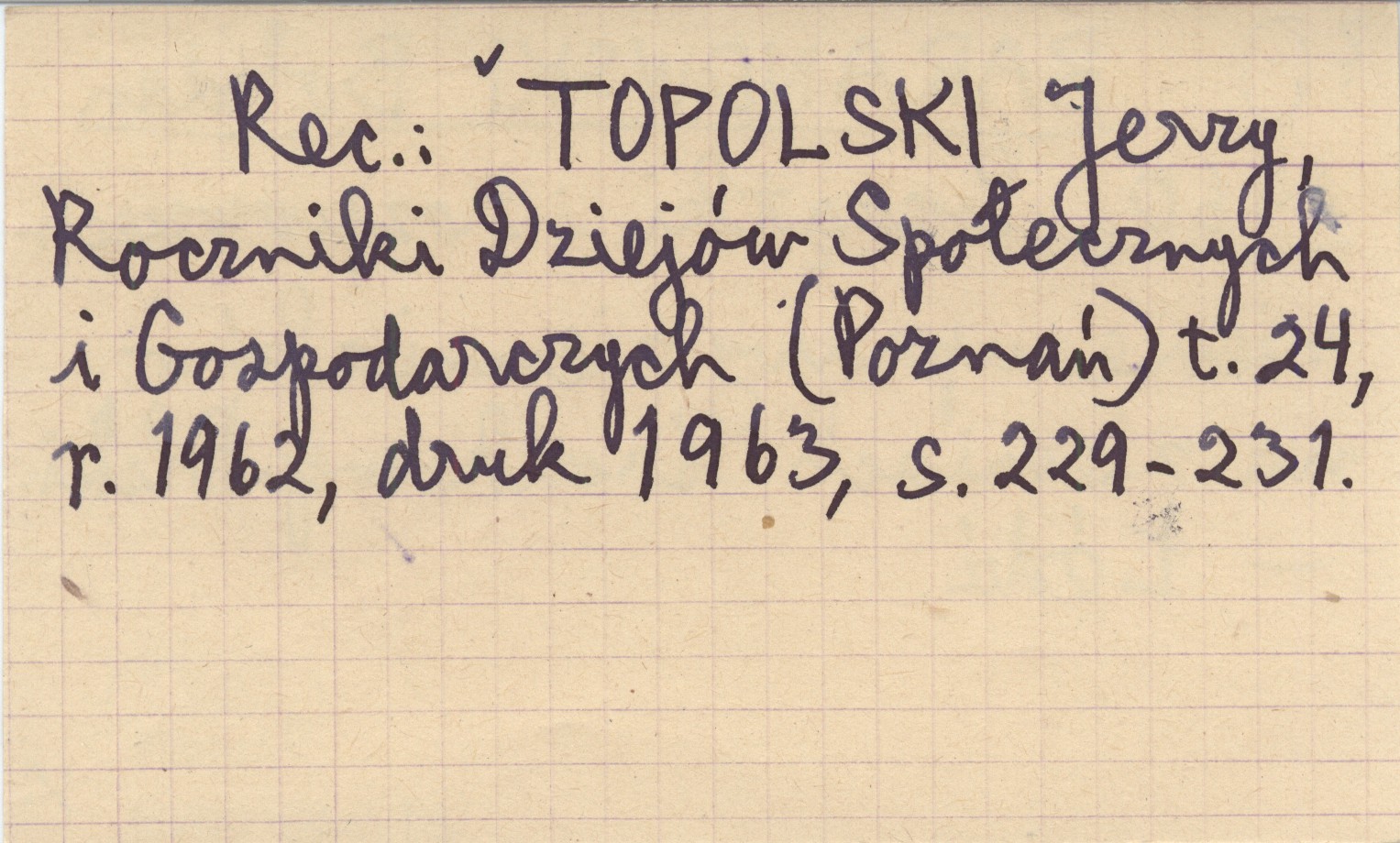 Łódź , REC: TOPOLSKI Jerzy, Roczniki Dziejów Społecznych i Gospodarczych (Poznań) t. 24, r. 1962, druk 1963, s. 229-231.