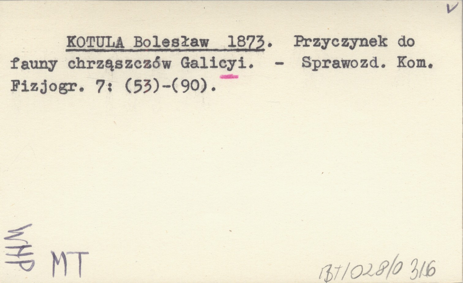 KOTULA Bolesław 1873 Przyczynek do fauny chrząszczów Galicyi.