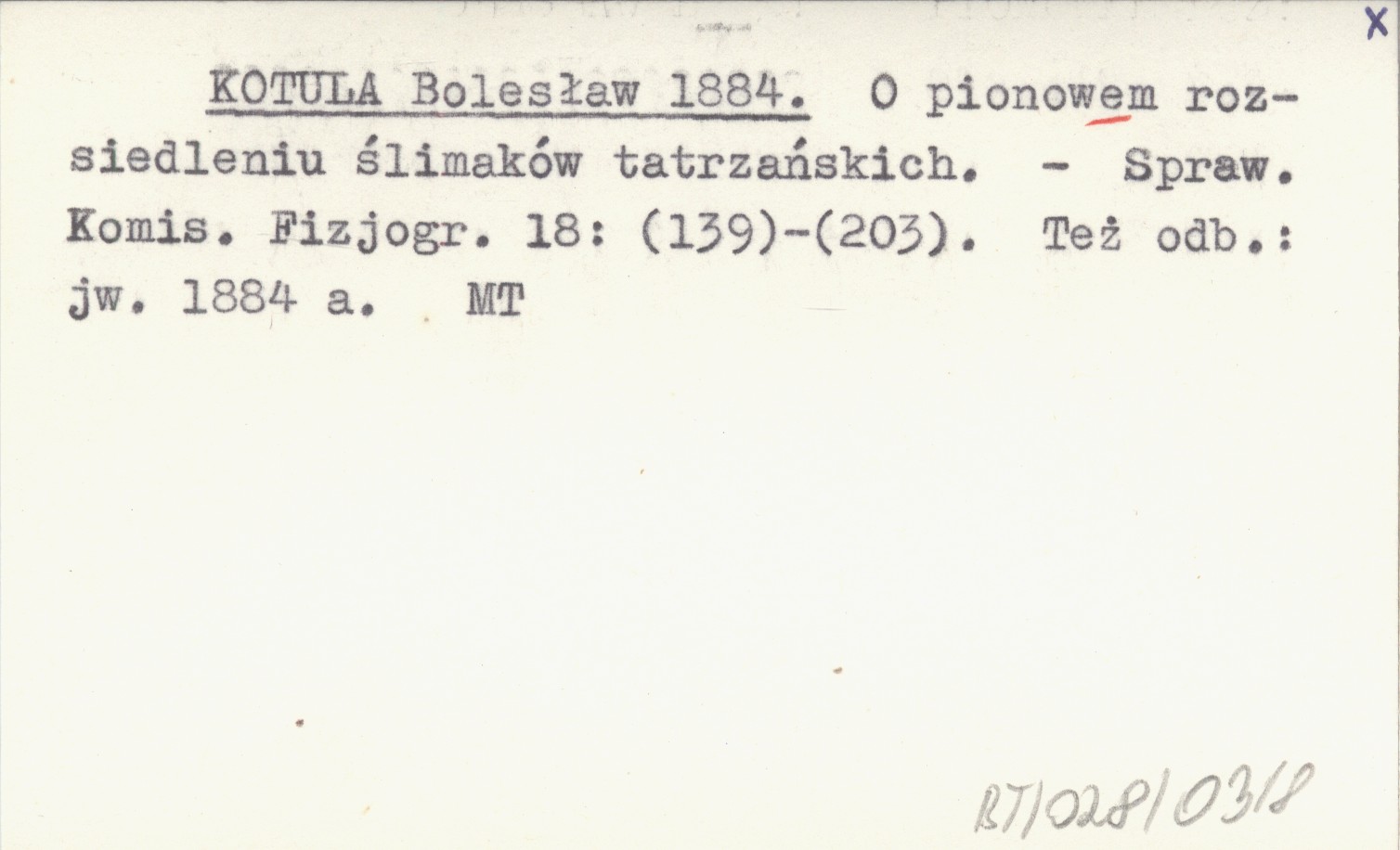 KOTULA Bolesław 1884 O pionowem rozsiedleniu ślimaków tatrzańskich.