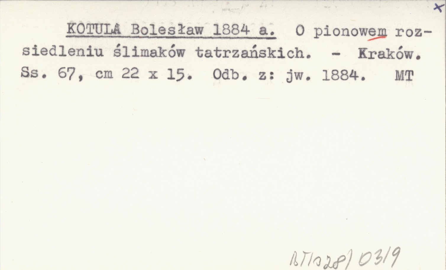 KOTULA Bolesław 1884 a O pionowem rozsiedleniu ślimaków tatrzańskich.