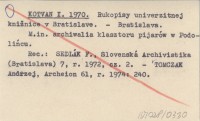 KOTVAN I. 1970 Rukopisy univerzitnej kniľnice v Bratislave.