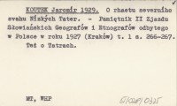 KOUTEK Jaromír [ANDRUSOV] ANDROUSSOFF, [Dimitrij] Dimitri. ; 1929 a Sur le facies "Couches rouges" du Crétacé supérieur dans la zone des Klippes internes des Carpathes occidentales.