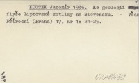 KOUTEK Jaromír 1936 Ke geologii flyąe Liptovské kotliny na Slovensku.