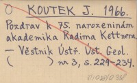 KOUTEK J. 1966 Pozdrav k 75. narozeninám akademika Radima Kettnera.